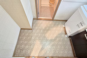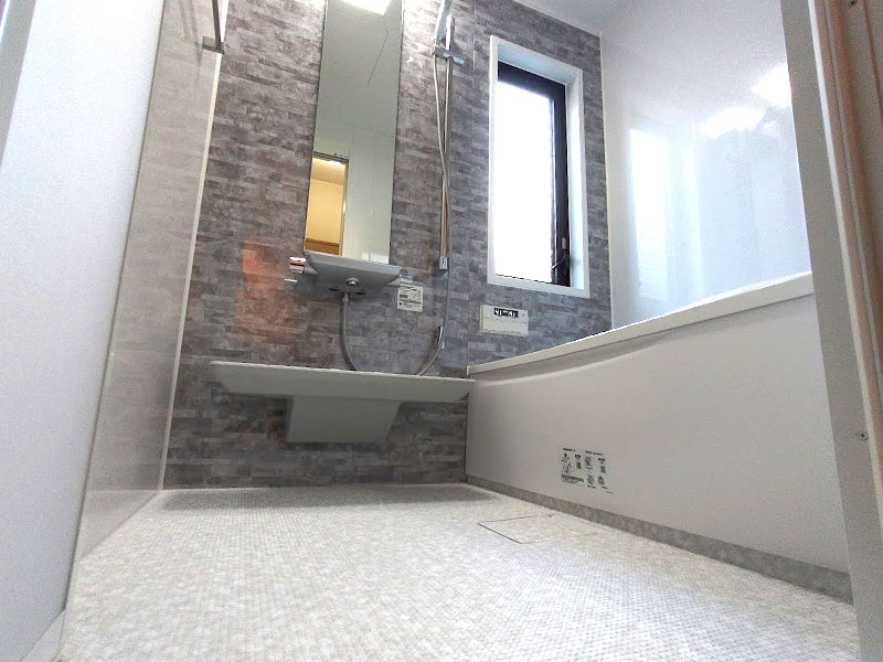浴室:TOTO サザナ Tタイプ 1317サイズ(アクセントパネル:クレアライトグレー) クロス:サンゲツ SP(品番:SP-9716) クッションフロア:サンゲツ Hフロア(品番:HM-16145) |