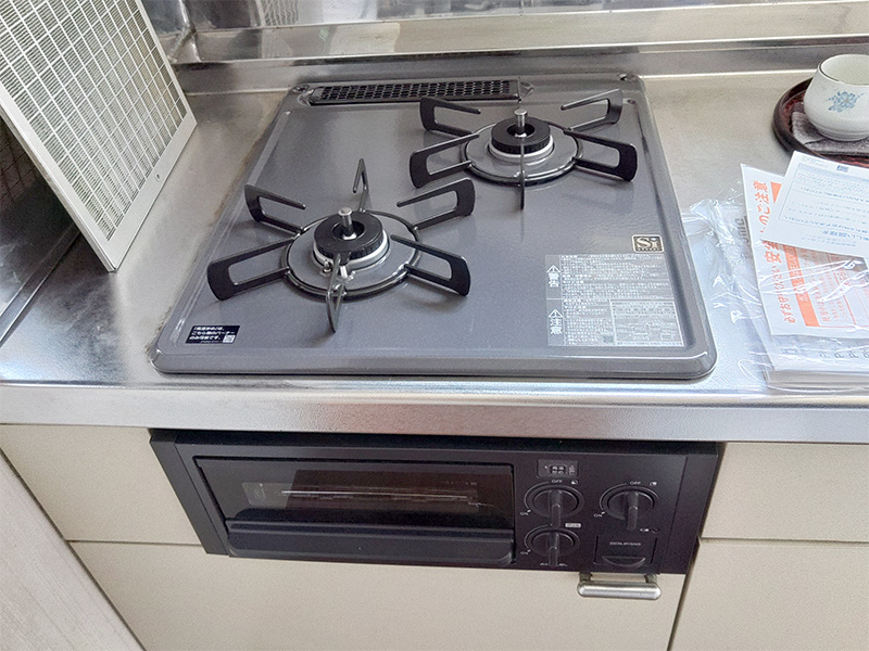 キッチン自体の交換は行わなかったため、ガスコンロのみ既設品と同じ寸法の商品にて交換いたしました。